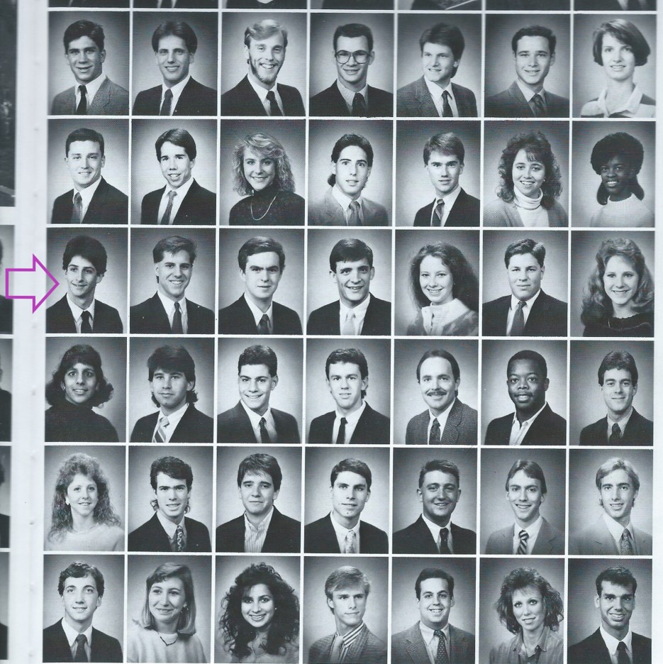 Here's my mugshot on a page of the 1989 Blueprint yearbook; this sample of the student body is representative of Tech's demographics from that era.