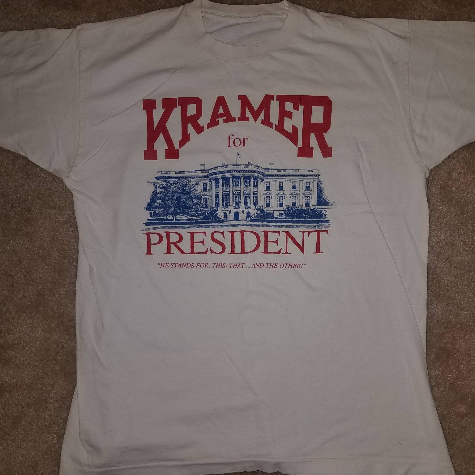 As it turned out, one of the Vandelay Industries participants owned an apparel store, which led to a bonanza of unlicensed merchandise. In addition to the T-shirt supporting a candidate whose campaign slogan was pulled from the friends-with-benefits-themed second-season episode "The Deal" ("He stands for This, That, and The Other!"), I also bought a collared shirt bearing the eponymous phantom employer of George Costanza.