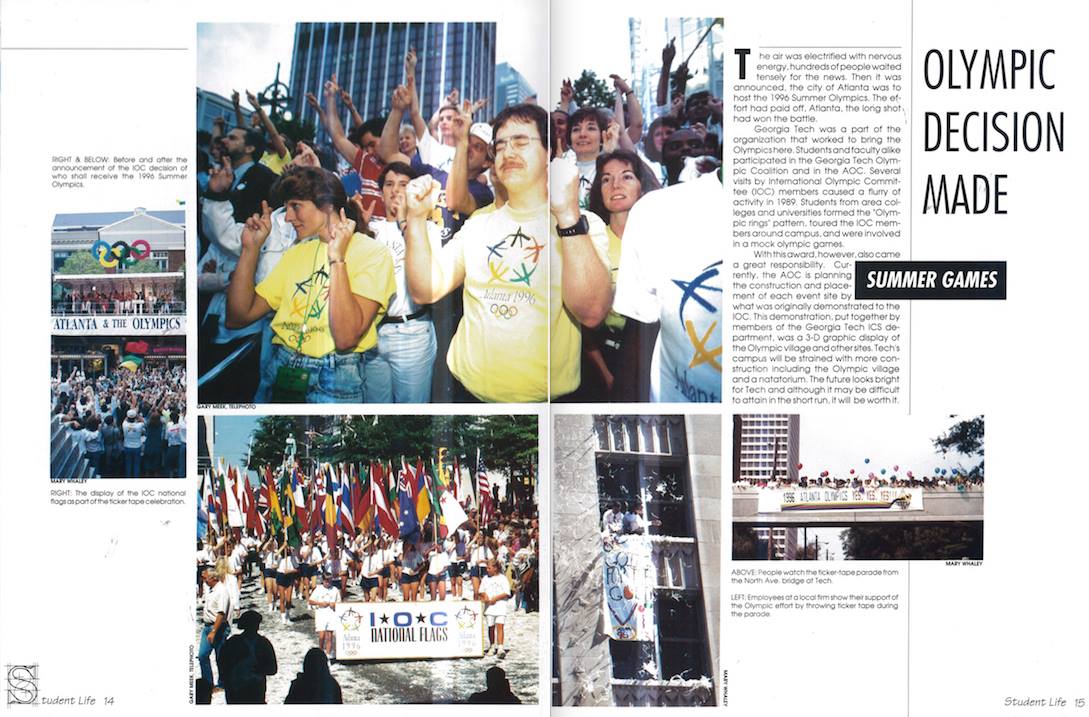 In addition, that year Atlanta was awarded the Games of the XXVI Olympiad, upsetting Athens' bid to host the Centennial Olympics. Six years later (and 21 years ago this week), Tech became the Olympic Village and hosted venues for boxing and swimming & diving.