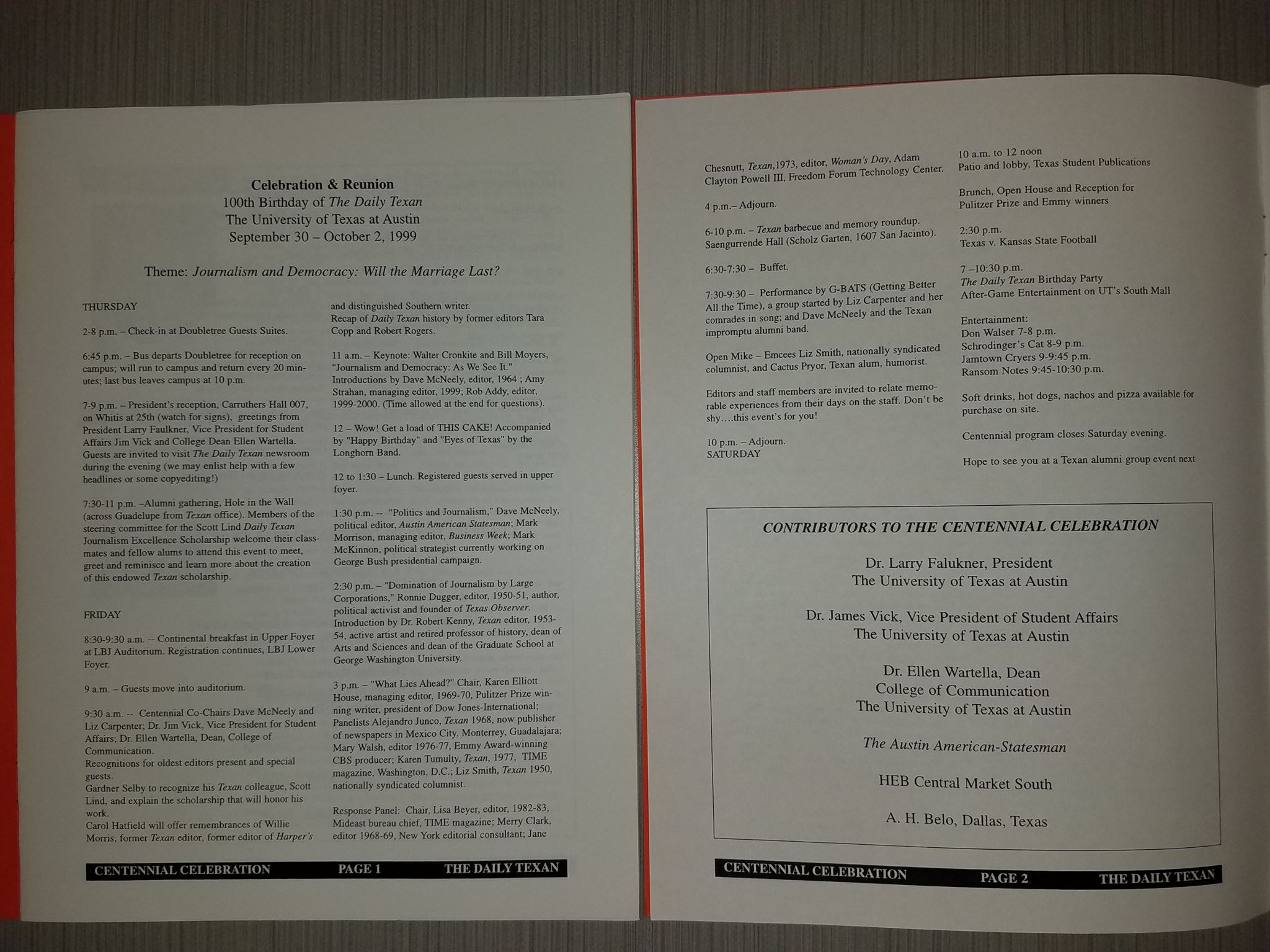 Eighteen years ago this week, The Daily Texan celebrated its hundredth year. There was a big gathering at the LBJ Auditorium on October 1; Texan alums Walter Cronkite and Lady Bird Johnson cut the centennial cake.